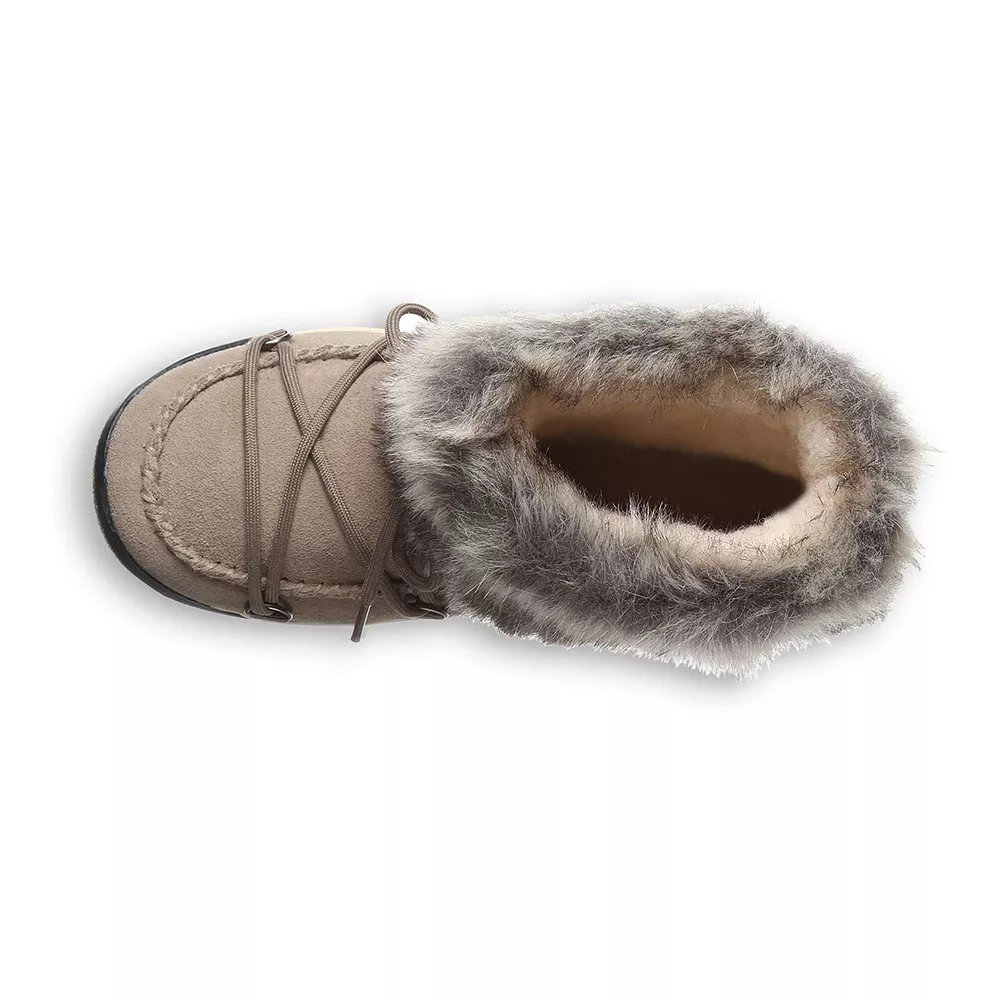 These lace-up Bearpaw Marilyn Women’s Waterproof Bootsies have a notched rubber sole that hangs on to any surface, no matter how slick.